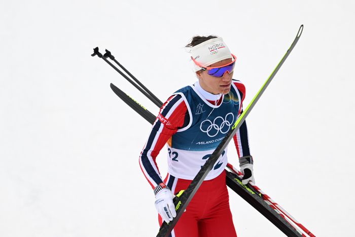Og der får Andersson omsider på seg en ny ski. Huff, dette er triste bilder.