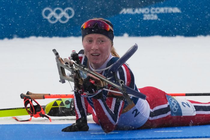 De norske etter første skyting: 15. Marthe Kråkstad Johansen (16 sekunder bak), 21. Karoline Knotten (31 sekunder bak) og 23. Maren Kirkeeide (32 sekunder bak).