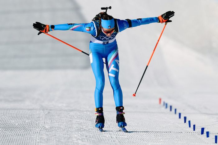Vittozzi vender den siste bakken! Vi ser gullvinneren her nå. Kan vel nesten hente et italiensk flagg på veien også.
