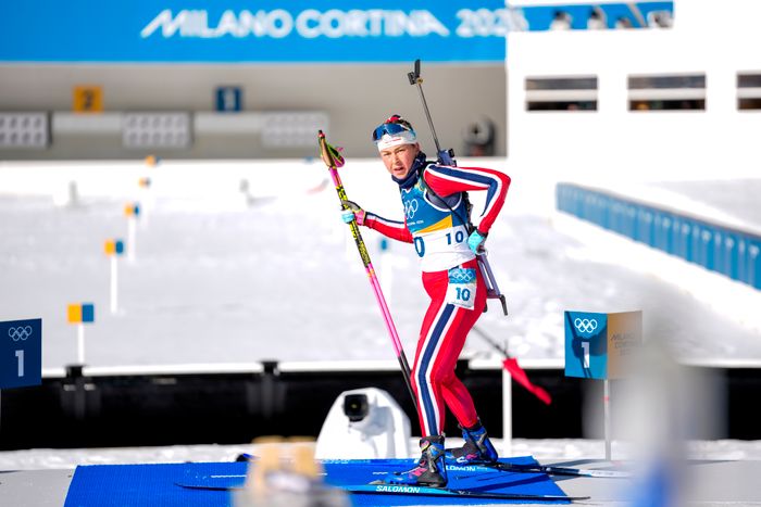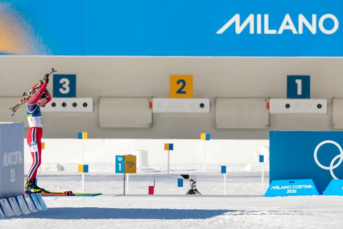 Der røk gullet for Kirkeeide. To bom på den siste stående skytingen blir nok for stort forsprang. Vittozzi er så enormt rask på skytingen.