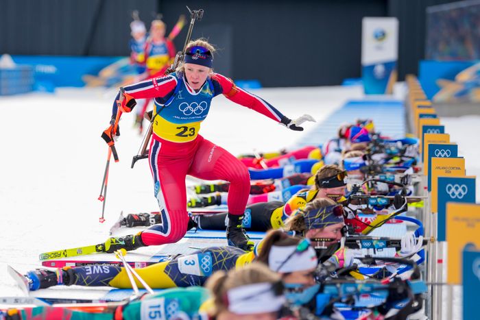 Vi er i gang her! Det er Marthe Kråkstad Johansen som starter ballet for Norge.