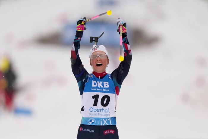 Julia Simon er VM-dronning og kan ta sitt femte gull i mesterskapet i dag. Fellesstart er den eneste øvelsen hun ikke har gull i fra tidligere.