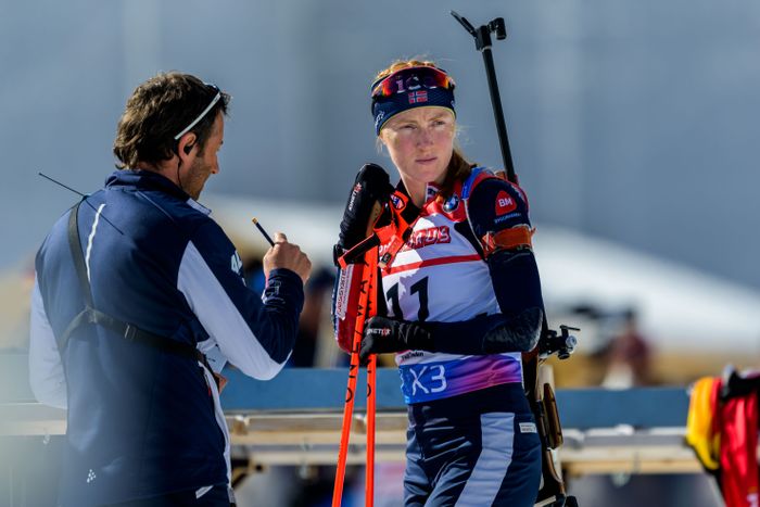 Preuss og Jeanmonnot får en liten luke ned til de tre andre inn til skyting.