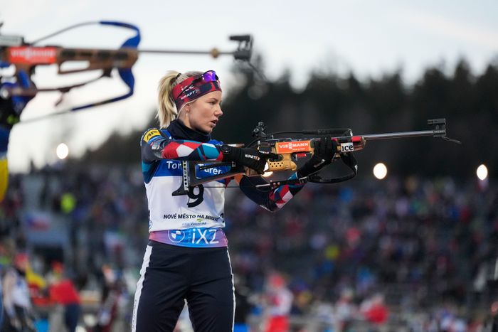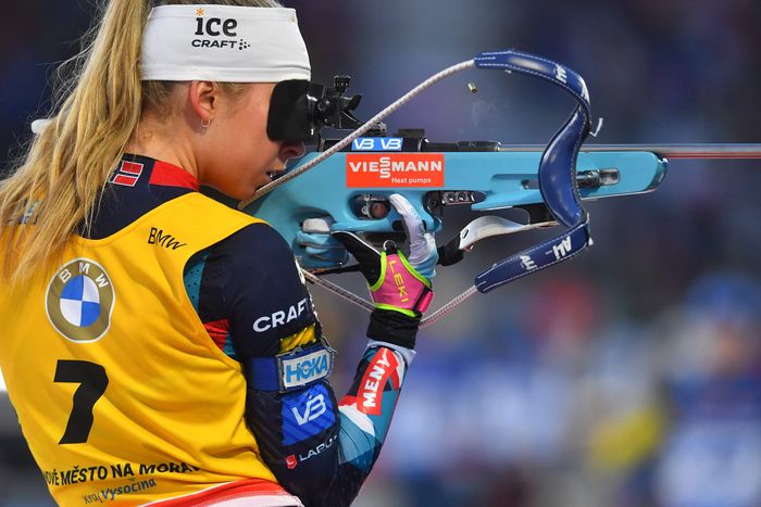 Braisaz-Bouchet får to bom på 2. skyting, går ut 1:40 bak. Da er hun avhengig av at lagvenninnene også bommer.